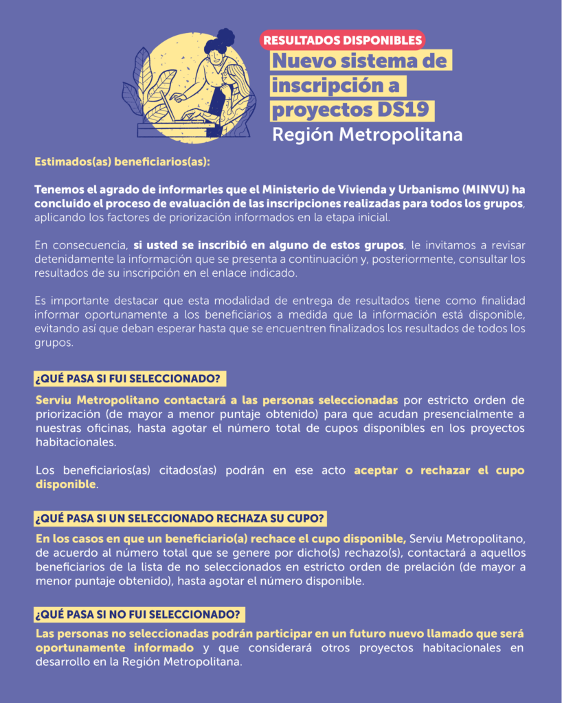 El nuevo Sistema de Incorporación de Familias de menores ingresos en Proyectos del Programa de Integración Social y Territorial D.S. N°19, permite a los beneficiarios y beneficiarias inscribirse en igualdad de condiciones y participar en un proceso claro, equitativo y transparente, con factores de priorización conocidos de antemano, donde se privilegia la equidad en el acceso a los inmuebles disponibles en cada proyecto habitacional.